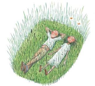 תעצמו את העיניים… צבעים עזי מבט, תכלת מסנוורת ירוק בוהק, שפריץ-שניים אדום, שלולית בז'. איפה אנחנו? בקיבוץ. אתם יודעים – לכל חבר יש פיסת דשא לפני הבית. ואתם ודאי מכירים את הפתגם – הדשא של השכן ירוק יותר. אני הייתי מקפיד על זה – שהדשא של השכן שלי תמיד יהיה ירוק יותר. למה לפחות כלל אחד בחיים, לפחות אחד, רציתי להחזיק אחד לאחד כמו שאומרים. שלא ידמה לי שאני שואף למשהו שיש לשכן שלי, לא לא. הדשא של השכן שלי ירוק יותר. נקודה.