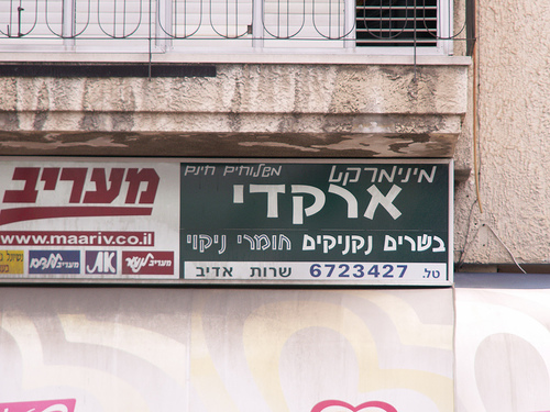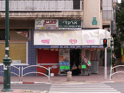 כמעט כל יום אני עובר ליד המינימרקט של ארקדי בדרך לעבודה, ואין יום שאני לא מביט בשלט הזה ומתמלא פליאה לנוכח הקונספט השיווקי התמוה שעמד במוחו של מי שעיצב אותו.