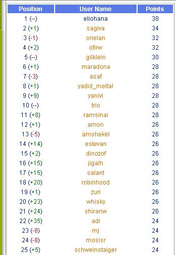 אתמול ד' התקשר ושאל אם הצצתי בלוח התוצאות של האתר. עניתי לו שלא, והוא שלח אותי – ומהר – לעיין בנקודות שלי שם.