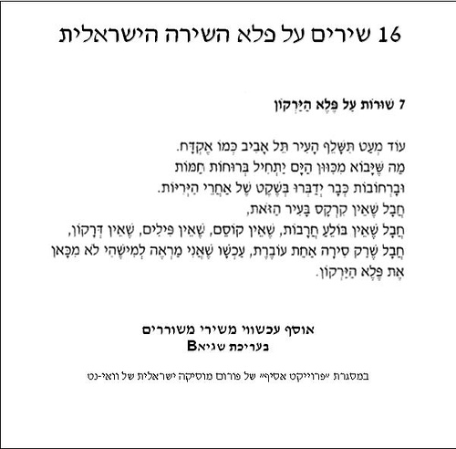 בקיצור ובלי להתעכב יותר, אני מתכבד להציג את "ששה-עשר שירים על פלא השירה הישראלית – אוסף עכשווי משירי משוררים".