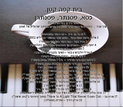6 מחשבות על “ובית קפה קטן. כסא, פסנתר, פסנתרן (מיקסטייפ)
