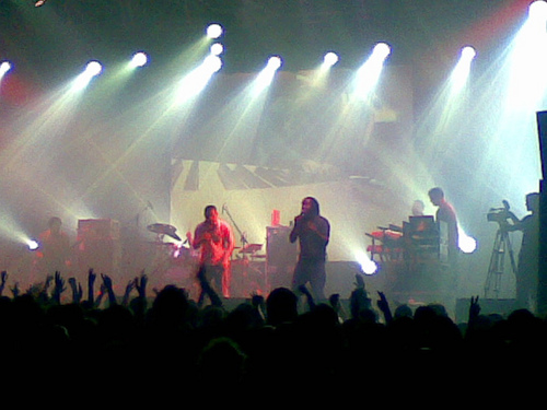 וכך מצאתי את עצמי בעשר בכניסה להאנגר, מפלס את דרכי בין גדודי הסלבס שבאו לראות ולהיראות (יונית, ווט דה הל וור יו ת'ינקינג, גירל?!). לשמחתי, התזמון התגלה כאופטימלי (תוצאה של שנים של ניסיונות כושלים להבין את מערכת התזמון הישראלית לענייני הופעות) – שיחה קצרה בחוץ, אספרסו מקיאטו ב"ארומה", ג'יימסון עם פפסי מקס בבר והופ – ההופעה מתחילה.