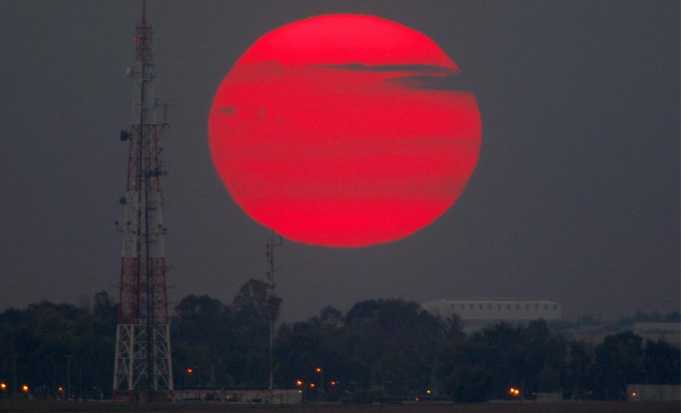 השמש שוקעת על גבול ישראל-עזה, 4 בינואר 2009 (צילום: Yannis Behrakis/רויטרס)